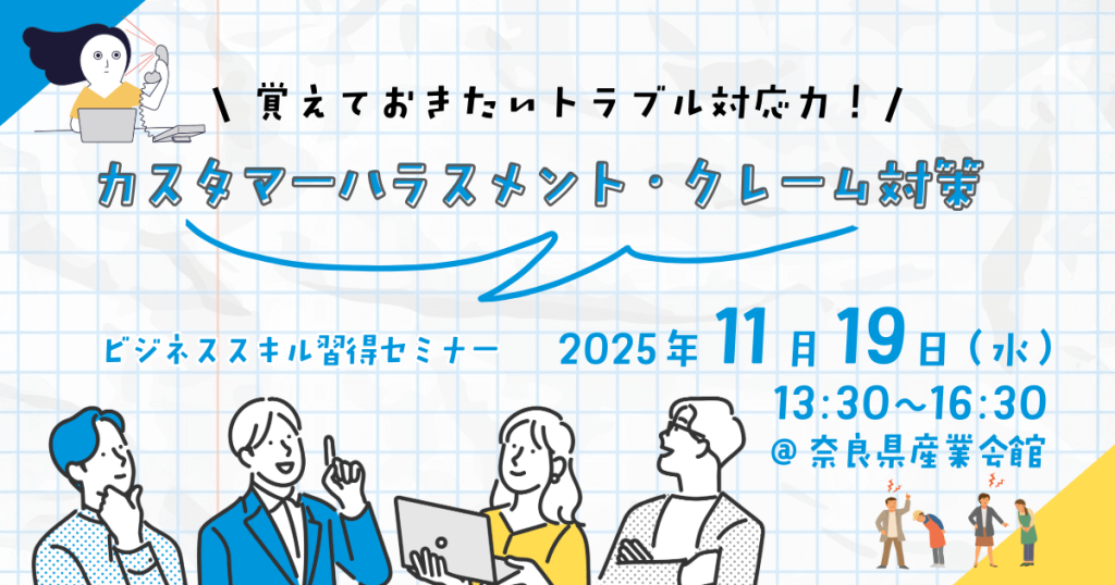 ★開催終了★【ビジネススキル習得セミナー】覚えておきたいトラブル対応力!カスタマーハラスメント・クレーム対策